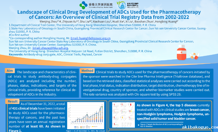 由华体会最新登录首页临床试验中心(CTC)牵头,联合院内肿瘤中心、中山大学肿瘤医院药学部,发布针对热门研究药物ADC近20年全球临床试验概览及分析,入选DIA年会论文壁报展。