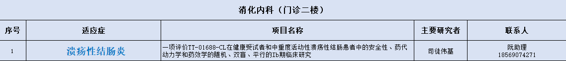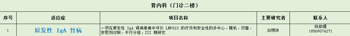 下表为我院临床试验受试者招募清单,若您想使用最新疗法,可联系对应工作人员,我们将为您详细讲解试验情况。
